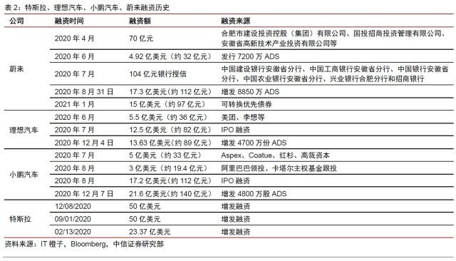Since 2020, NIO has received a total of CNY41.5B (USD4.68B) in equity / bond financing; Li Xiang has received a total of CNY20.7B (USD2B) in equity financing; XPeng has received approximately CNY30.4B (USD4.7B) equity financing. Tesla has received USD12.34B in equity financing. CITIC Securities believes that since 2020, the 4 companies have received a total of about USD23.72B in financing, which will greatly accelerate the rapid development of the autonomous driving/smart electric industry chain. (CITIC Securities report)
