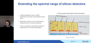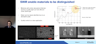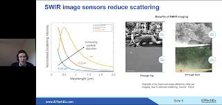 Photonics Spectra conference held on-line this week (with free registration) features IDTechEx analyst Matthew Dyson presentation “Emerging Short-Wavelength Infrared Sensors.” Few slides from the presentation:
